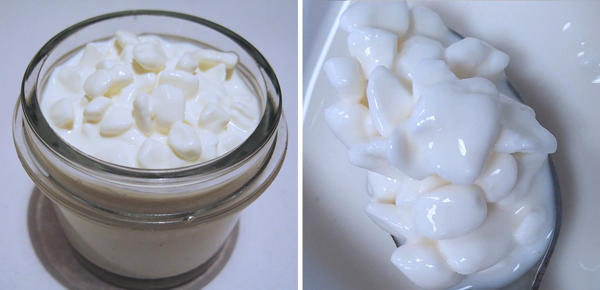 При производстве зерненого творога применяется закваска, состоящая из штаммов Lac. lactis и Lac. cremoris. В некоторых случаях, для увеличения остаточной микрофлоры в готовом продукте, добавляется Str. termophilus. Lac. Lactis и Str. termophilus способствуют развитию активного кисломолочного процесса, а Lac. cremoris обеспечивает аромат готового продукта. Особенно важно, чтобы в состав закваски не входили штаммы, образующие большое количество углекислого газа, так как в противном случае возможно всплывание зерна в процессе производства. В домашнем сыре количество молочнокислых стрептококков меньше, чем в твороге, и составляет 106-107 КОЕ в 1 г. Это объясняется высокой температурой второго нагревания и длительной обсушкой. Существует тонкая грань между количеством микроорганизмов и сроками хранения готового продукта. Чем больше микроорганизмов, тем быстрее коагулируют сливки, превращаясь в сметану. С другой стороны, зерненый творог, как творожный продукт, должен иметь не менее 106 КОЕ в 1 г. Применение в составе закваски Str. termophilus обеспечивает 106 КОЕ, и в тоже время эти бактерии медленнее развиваются при низких температурах хранения, продлевая сроки годности готового продукта.