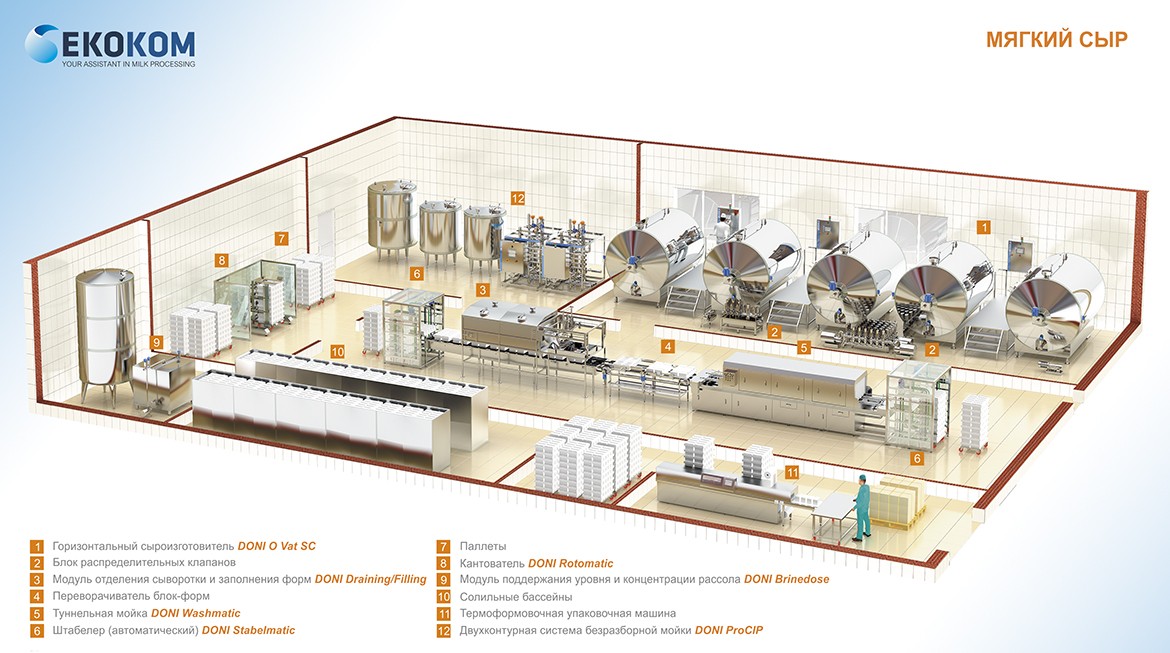 Суточная производительность участка составляет 14 000 кг готового продукта при объеме DONI O Vat SC (1) – 3 000 л.