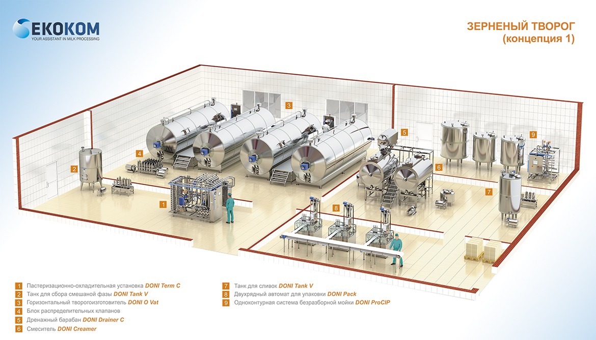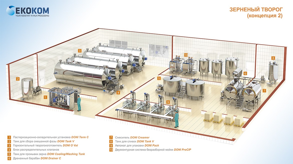 В странах СНГ «Зерненый творог» или «Домашний сыр» все больше и больше пользуется спросом. Этот продукт очень рентабелен из-за повышенного спроса и ограниченного предложения. Кроме того, большую часть продукта сейчас производят ручным или полуручным способом, на устаревшем оборудовании отрытого типа. Зачастую такой продукт получается низкого качества, с малым сроком годности. Отсюда и большой интерес к современной линии закрытого типа, позволяющей получить натуральный продукт высокого качества со сроком годности 15-20 дней.