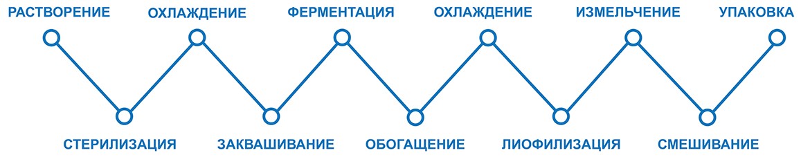 Серийное производство ведется в соответствии с европейскими нормами и стандартами. Процесс изготовления многоштаммовых заквасочных культур компьютеризирован и проходит в асептических условиях без применения ручного труда. Контроль качества ведется на всех стадиях производства в соответствии с принципами системы безопасности пищевых продуктов FSSC, НАССР и системой безопасности ISO.
